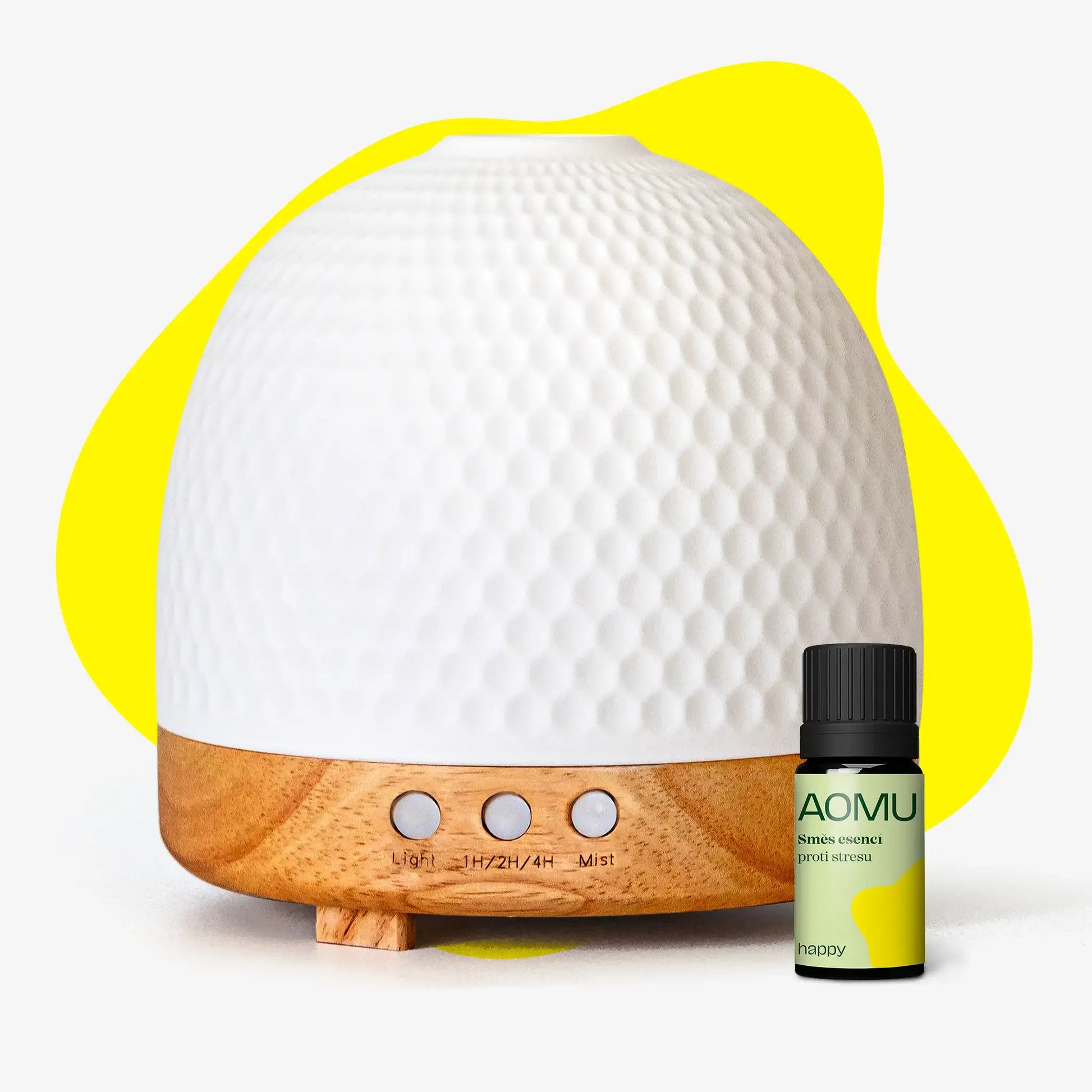 AOMU Mellow je navržený pro rovnoměrné a jemné rozptylování vůně v interiéru. Díky nádržce na 300 ml vody zvládne běžet až 8 hodin, takže se hodí jak na večerní relaxaci, tak i do pracovny.